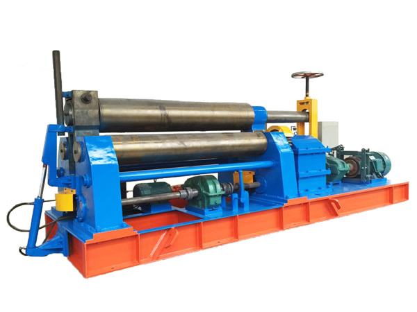 產品特點:該機為對稱式三輥卷板機,借助手動離合器把上輥調節成平行或傾斜位置,以適應卷制圓形和錐形工件的需要,尾端設有液壓倒頭翻轉裝置,有電器控制,取代了一般三輥卷板機使用人工倒頭的方法,渦輪上下配有特種壓力軸承,轉動輕松、省電耐磨。